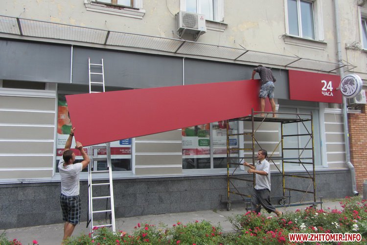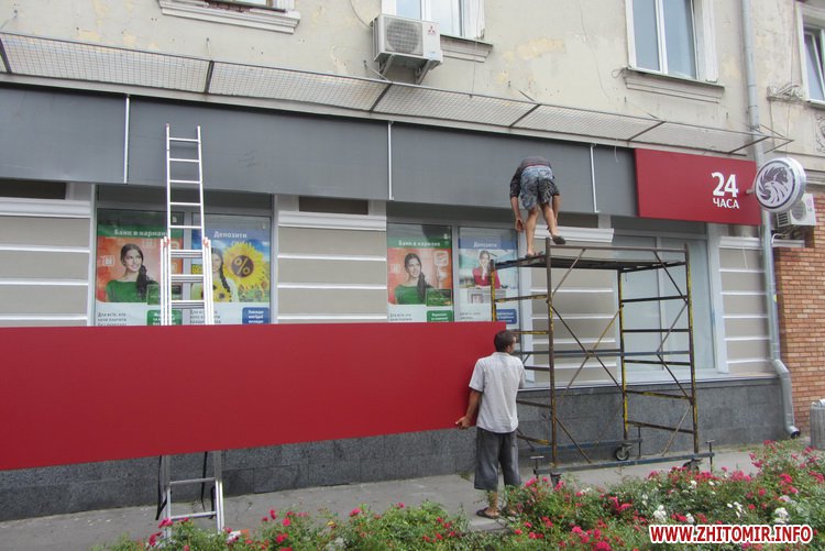 На отделении банка по ул.Большая Бердичевская 15 июля меняют разбитую вывеску