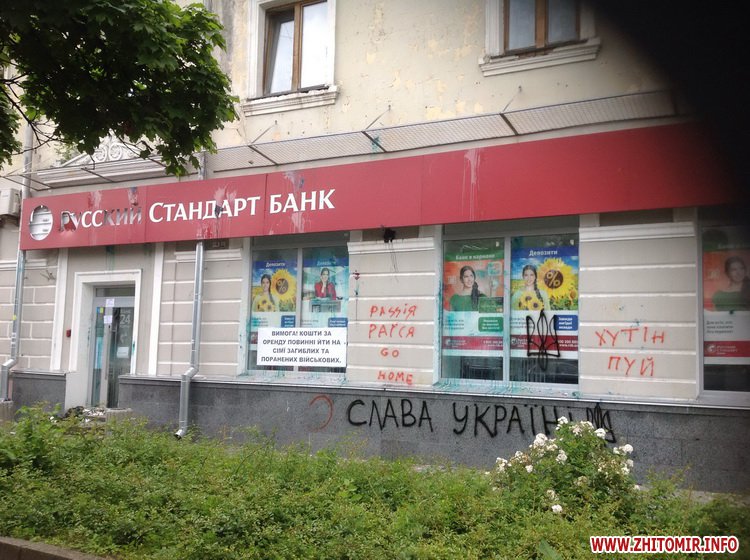 Как сообщал Житомир.info, 20 июня в Житомире несколько десятков человек повредили вывески и разрисовали стены пяти отделений российских банков. нескольких банков их помещений. На брифинге 3 июля начальник УМВД Украины в Житомирской области Юрий Демяненко говорил, что после завершения расследования милиция направит в суд дела о хулиганстве и порче имущества отделений банков.