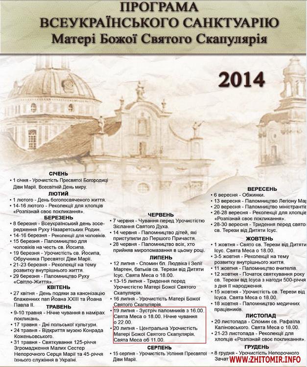 На сайті Києво-Житомирської дієцезії Римо-Католицької церкви в Україні опублікована програма урочистостей Матері Божої Святого Скапулярія.