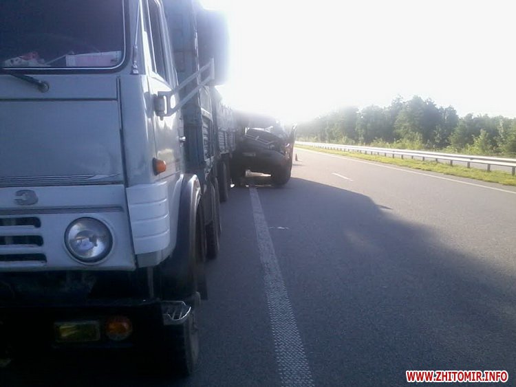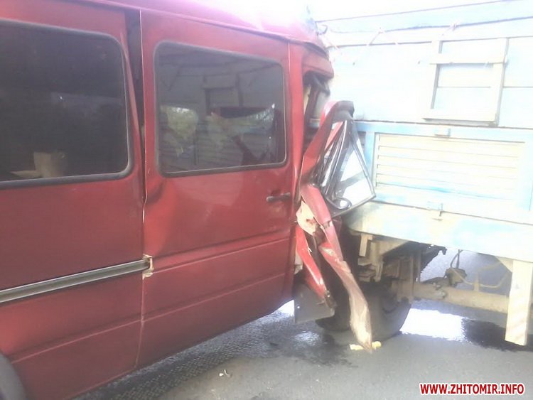 Около 17.45 20 июля на 193 км автодороги Киев-Чоп в Червоноармейском районе водитель автомобиля Mercedes-Benz Sprinter, 22-летний житель Киевской области, не выбрал безопасную скорость движения, не учел безопасную дистанцию и врезался в автомобиль КамАЗ с прицепом ГКБ-8350, под управлением 40-летнего жителя Ивано-Франковской области, который ехал в попутном направлении.