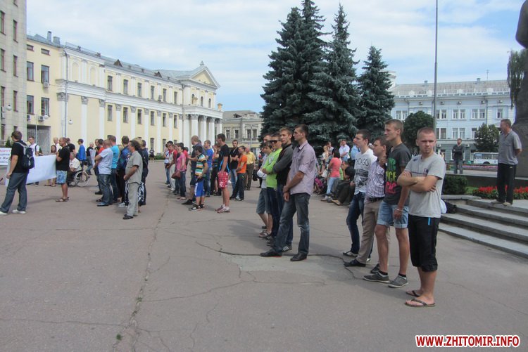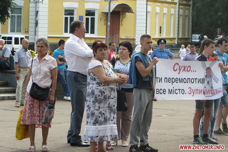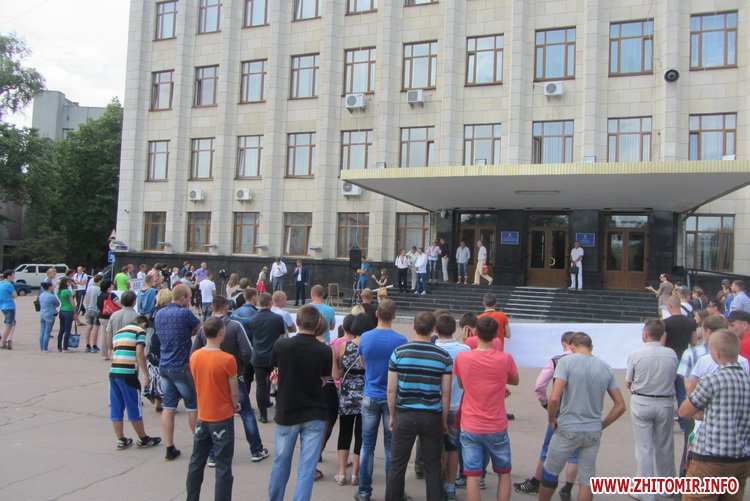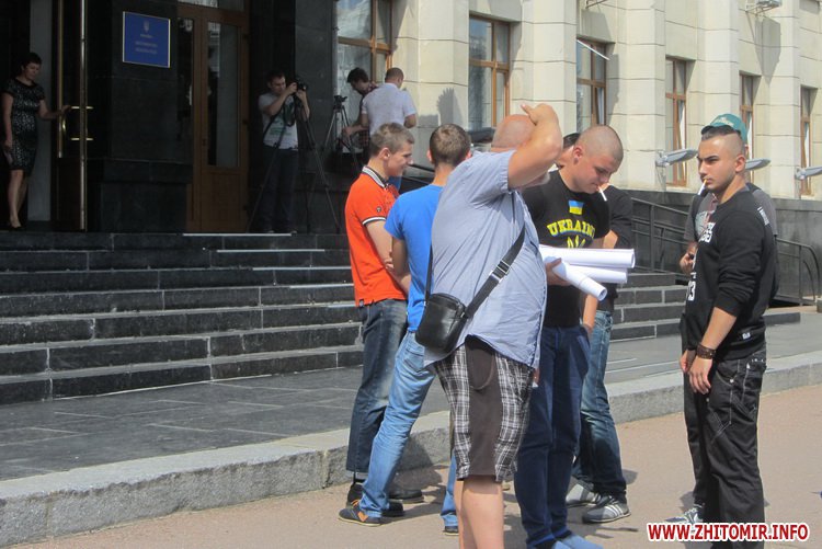 Близько сотні людей о 10.30 зібралися біля адмінприміщення, щоб висловити свою незгоду з можливим звільненням губернатора-«свободівця». Ведучим акції був Андрій Федірко, а виступаючими – спікери анонсованої на 21 липня прес-конференції в УНІАН: Валерій Нагребельний; Наталія Волинець; Володимир Дібров та Геннадій Краснобокий.