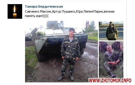 Як повідомляв Житомир.info, 19 липня у бою під Лисичанськом Луганської області загинув 20-річний контрактник 95-ї бригади Артур Пушанко.
