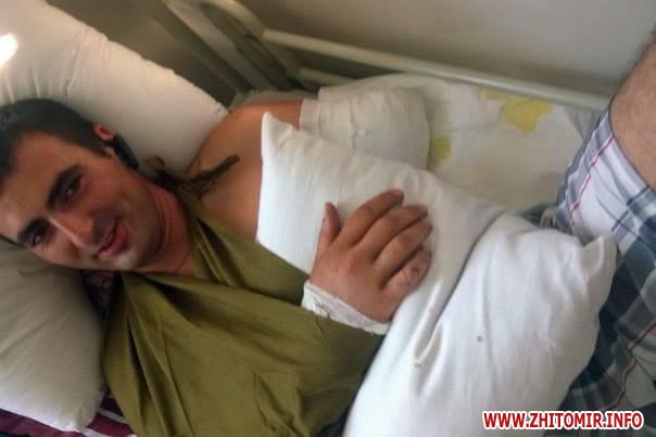 Михайло Рибак, 20 років, село Городище Черняхівського району, 51 мехбригада. 22 травня під Волновахою отримав вогнепальне кульове поранення руки, осколкове поранення голови та контузію. Після операції впав у кому. Перебуває в Одеському шпиталі з діагнозом «постгіпоксична енцефалопатія, набряк головного мозку, мозкова кома І-ІІ ст.», роздроблена променева кістка лівого передпліччя.