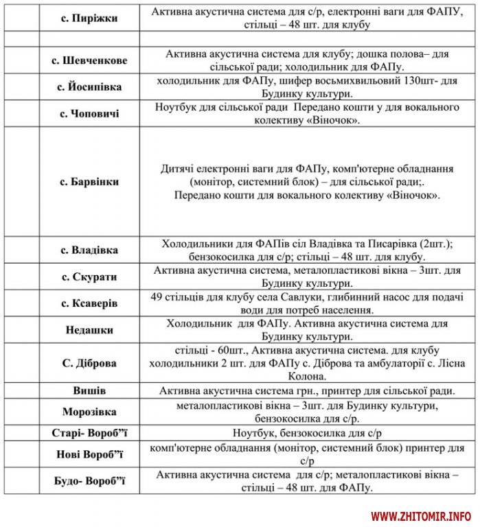 Зокрема, у Малинському районі народний обранець виконує свої обіцянки та прохання мешканців сіл та селищ щодо придбання акустичних систем для місцевих клубів, обладнання для ФАПів, оргтехніки для сільських рад.