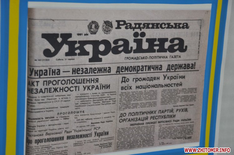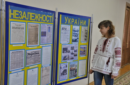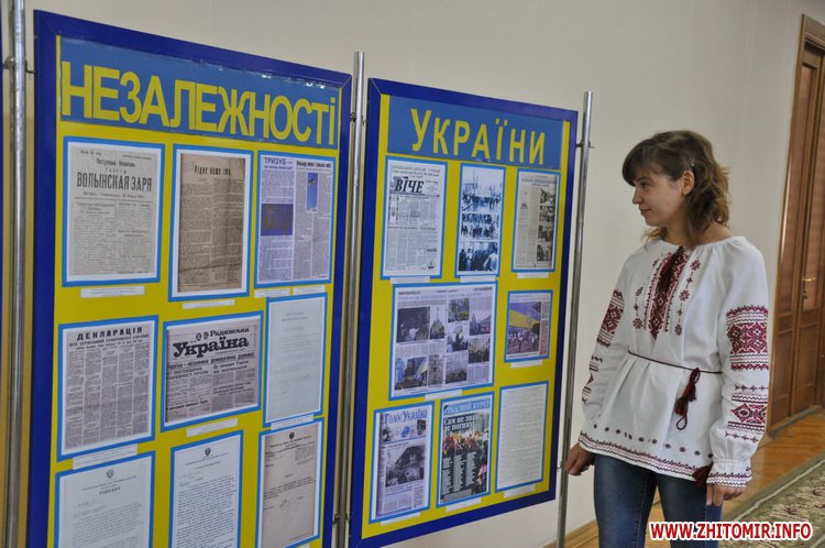 19 серпня з нагоди Дня незалежності України на третьому поверсі Житомирської облдержадміністрації відбулося відкриття тематичної стендової виставки документів і періодичних видань.