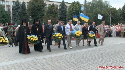 Біля пам’ятника Шевченка до громади звернулись представники влади міста та області і закликали до єднання. Також на святі з нагоди Дня Незалежності були присутні військові з 95-ої окремої аеромобільної бригади та прикордонних військ. Військовослужбовці подякували житомирянам за підтримку та запевнили - і надалі боронити незалежність та цілісність нашої держави.
