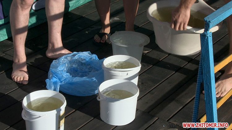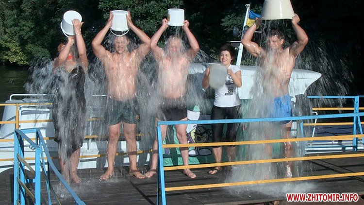 У Житомирі учасники флешмобу Ice Bucket Challenge в основному передають гроші на потреби української армії і дуже часто обливаються колективно.