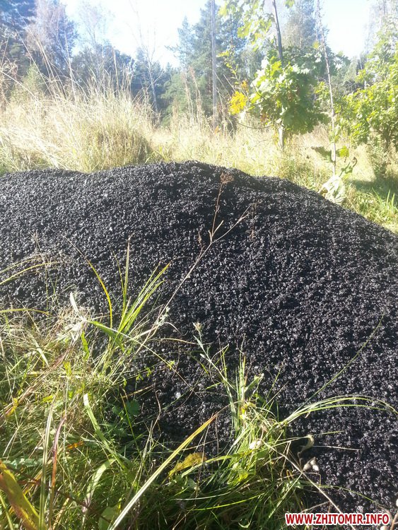 На підтвердження своїх слів люди надіслали до редакції Житомир.info фотографії з «відремонтованою» дорогою та купою асфальтосуміші біля водойми.