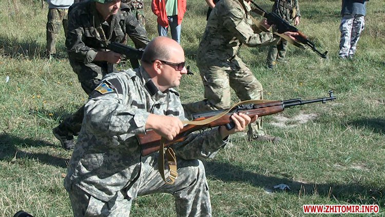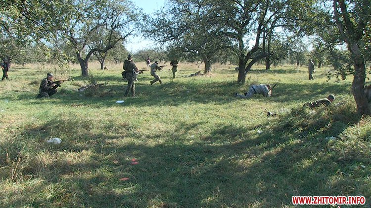 Так, у суботу 6 серпня близько півсотні чоловіків відпрацьовували вміння виходити з оточення. Керував заняттям 22-річний десантник 95-ї бригади, який повернувся з АТО на реабілітацію після поранення. Він давав практичні поради в залежності від ситуацій, які виникають на справжньому полі бою.