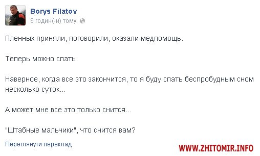 "Пленных приняли, поговорили, оказали медпомощь", - сообщил также Филатов.
