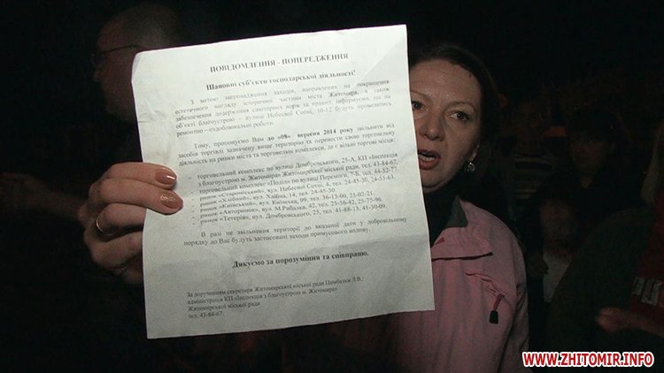 12 вересня близько 5 години ранку працівники КП «Інспекція з благоустрою м. Житомира», озброївшись підйомним краном на чолі з керівником підприємства Юрієм Самборським приїхали на вулицю Небесної сотні, аби демонтувати квітковий ринок. За порядком слідкувало близько десятка правоохоронців.
