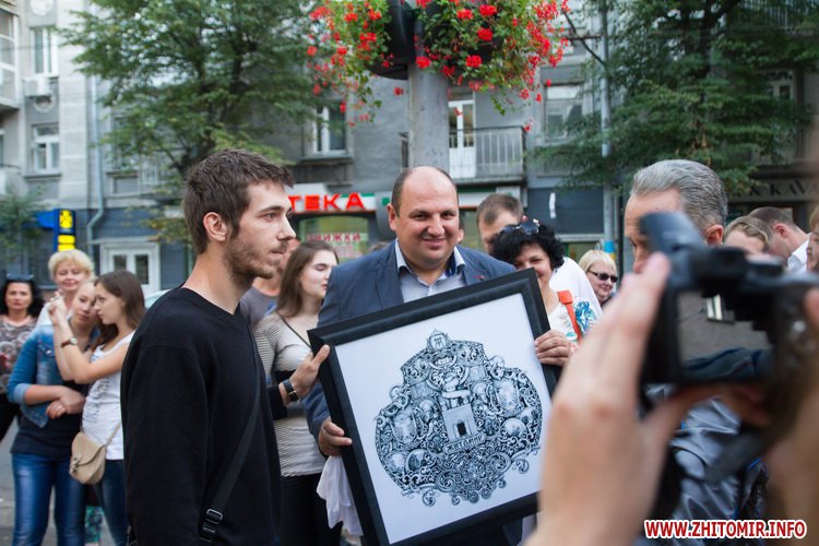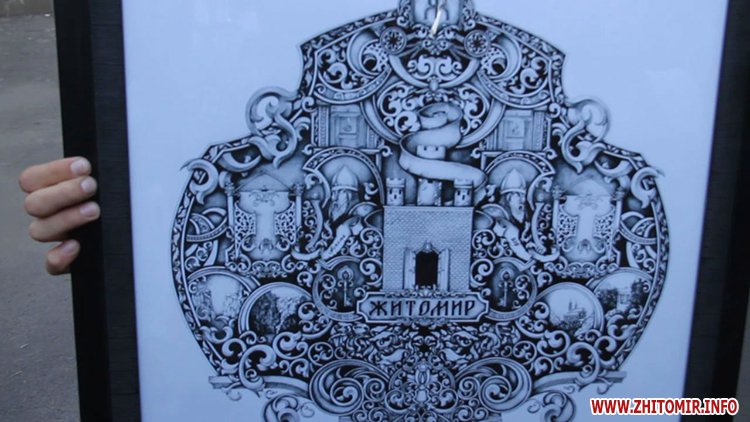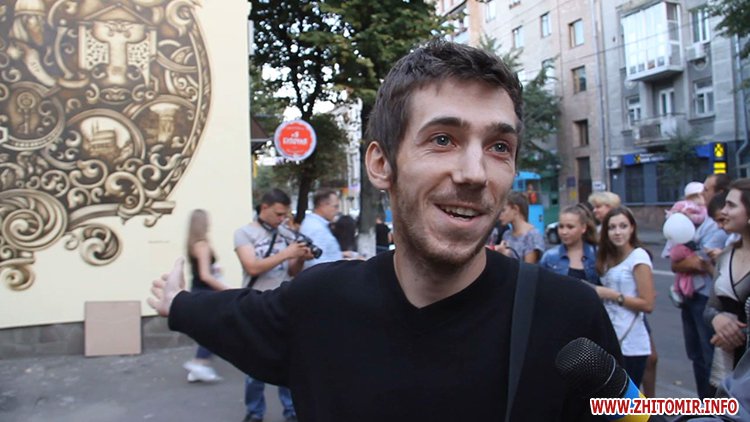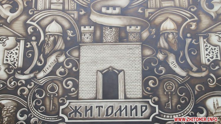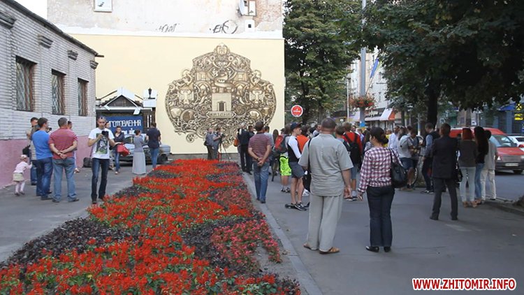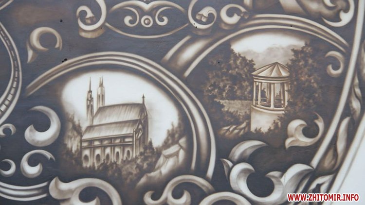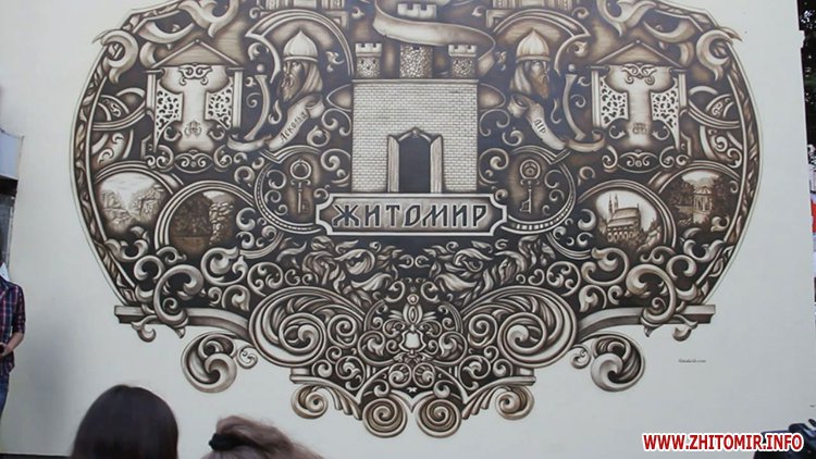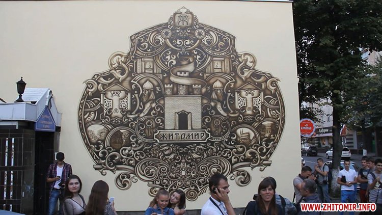 «Житомир в орнаменті» - під таким гаслом представив свою картину житомирський художник Діма Краб. Митець каже: місце вибрав зовсім не випадково, бо фасад будинку приваблював його близько двох років. За словами художника він хотів зробити місту подарунок до 1130-го ювілею.