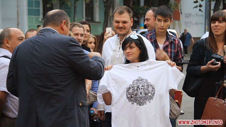 В суботу, 13 вересня, на День міста житомиряни зможуть придбати футболки та магніти з репродукцією картини художника. Усі, зібрані в такий спосіб кошти, підуть на допомогу військовослужбовцям, які були поранені в ході АТО.