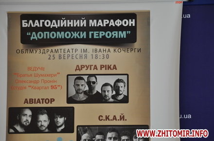 Завдяки ініціативі громадського об’єднання «Разом» та благодійної організації «Разом за справу» 15 вересня у Житомирі стартував благодійний марафон «Допоможемо героям», метою якого є збір коштів на лікування поранених військовослужбовців Житомирської області.