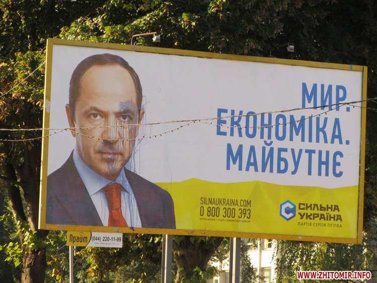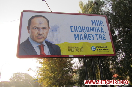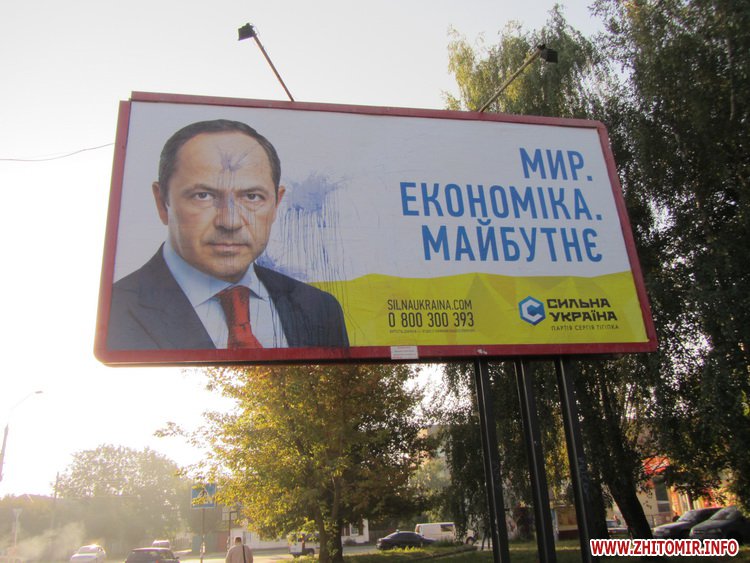 В Житомире продолжают «разукрашивать» билборды лидера партии «Сильная Украина» Сергея Тигипко.