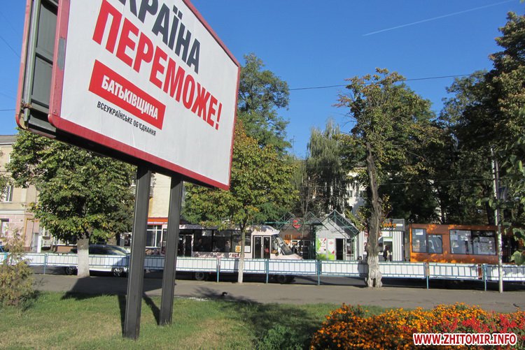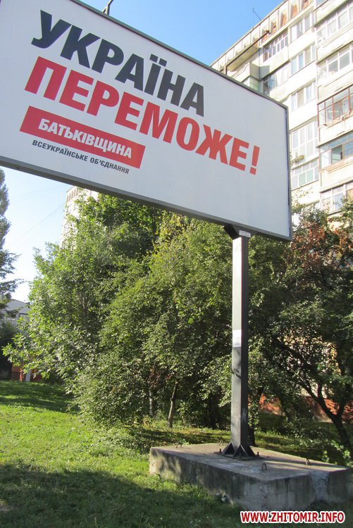 Житомир заполонили билборды и сити-лайты ВО «Батькивщина» со слоганом «Україна переможе!».