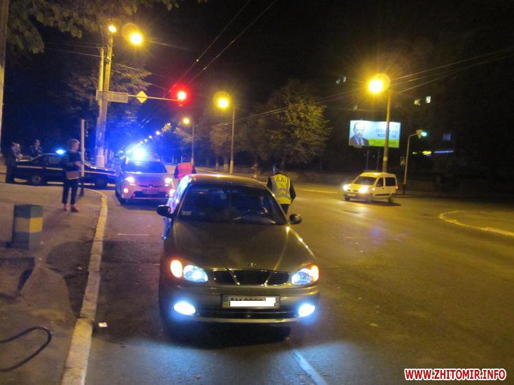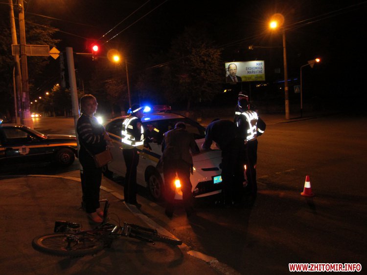 Автомобиль Lanos двигался по Большой Бердичевской в сторону Смолянки, мужчина на велосипеде пересекал проезжую часть дороги по регулируемому пешеходному переходу.