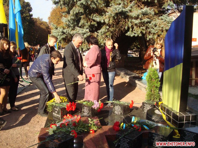 На урочистому відкритті пам’ятника Героям Небесної Сотні були присутні керівники району, жителі та гості Коростишева, запрошені представники 8-ї афганської сотні 24 штурмового батальйону «Айдар» Кливацький Петро та Паплінський Віктор і лікар Майдану Зіновій Петрович. Усіх загиблих на Майдані вшанували хвилиною мовчання.