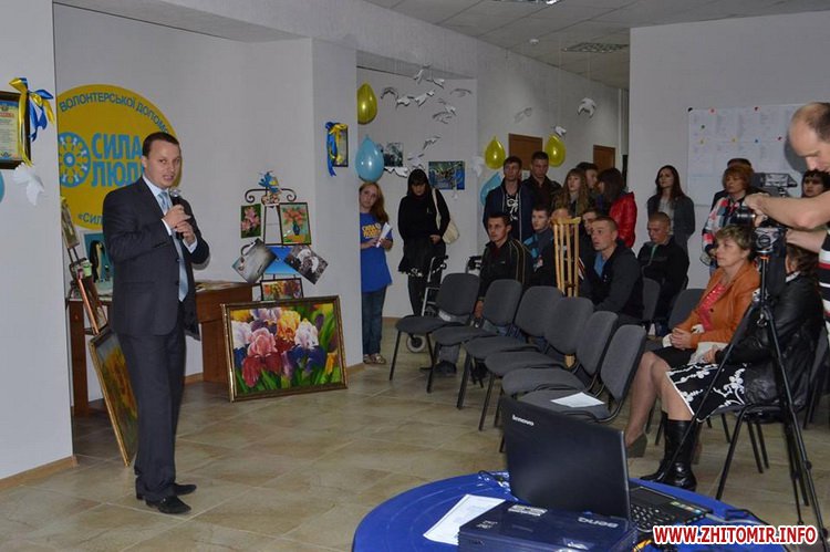 У рамках відкриття головного приміщення Центру волонтерської допомоги відбувся благодійний аукціон, до організації якого долучилися чимало житомирських організацій та волонтерів. Зокрема, МГО «АРТ-Село», Житомирська обласна літературно-мистецька студія ім. М. Клименка, Мистецька гільдія «Неабищо», Міжнародне братство Юрка Гудзя, громадський рух «За нашу свободу» та житомирська волонтерка Юлія Толмачова. У заході взяли участь й найпочесніші гості – військові, які нині перебувають на лікуванні та проходять реабілітацію після поранень у зоні АТО, і настоятель Свято-Михайлівського кафедрального собору Отець Богдан.