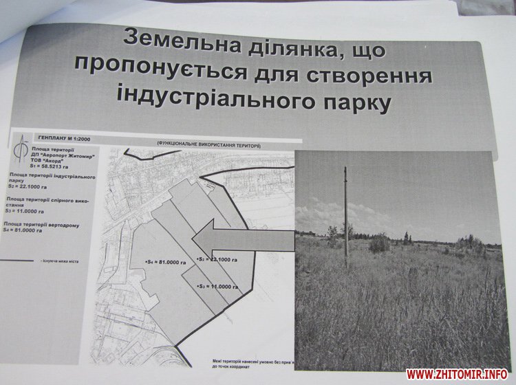 «Участок, который мы отобрали для нашего житомирского индустриального парка, это участок возле аэропорта, адрес – Киевское шоссе. На данный момент участок, с которого мы начинаем, это участок в 22 гектара. Параллельно мы ведем переговоры с Министерством обороны о передачи 80 гектаров земли для того, чтобы расширить этот индустриальный парк до площади 100 гектаров», - сообщил Сухомлин.