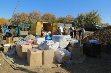 В одному бусі були солодощі – печиво, цукерки. Один з командирів, позивний у нього Птах, одразу сказав: «Це не нам – дітям». Справа в тому, що наші бійці взяли шефство над вихованцями школи-інтернату, котра знаходиться неподалік. Армійці кажуть, що дітям там дуже не вистачає їжі, тому й підгодовують цю школу. Спілка «Автомайдан-Україна» спеціально для цієї школи-інтернату планує зібрати речі і харчі.