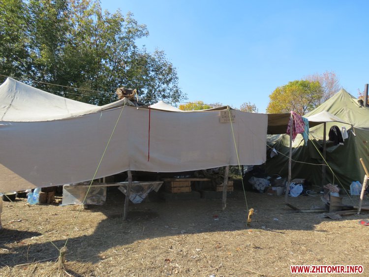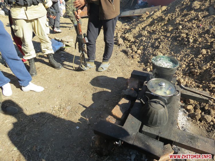 Бійці наші зараз дуже мерзнуть у своїх наметах. Завели мене у палатку. Показують: «Ось дивись, чим ми гріємося». Буржуйка – металева бочка. Хлопці кажуть: вона ніби й горить, але зовсім не гріє. Зранку прокидаються – пальці скручені, сині, розігнути не можна… Зараз вони готуються до зими, копають землянки. Ми привезли їм дві хороші великі буржуйки – вага більше 100 кілограм. Наші хлопці-житомиряни зробили. Бійці дуже задоволені.