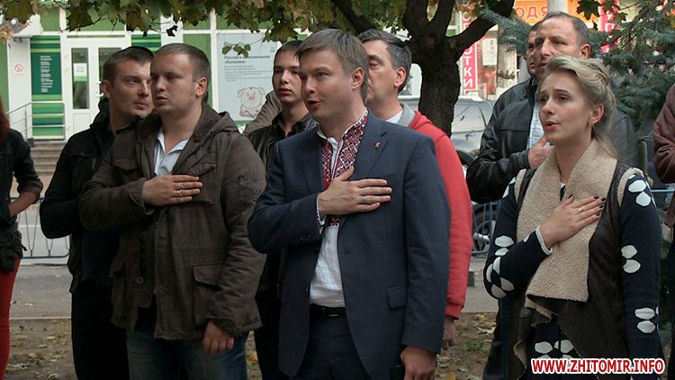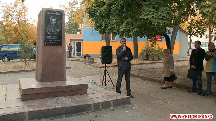 «На цьому місці буде пам'ятник Остафію Дашкевичу, нашому земляку родом з Овруча, який вважається засновником українського козацтва, засновником Запорізької Січі, він є першим кошовим отаманом Запорізької Січі. Таким чином, Житомирщина є не тільки колискою УПА, а є й колискою козацтва взагалі. Я вірю, що незабаром тут постане красивий пам'ятник, який прикрасить наше місто, я вірю, що ці постаті українських героїв до нас повернуться. А житомирян хочу привітати з Покровою Пресвятої Божої Марії, покровительки українського війська і побажати перемог нашим військовим, бо Пресвята Покрова їх захищає».