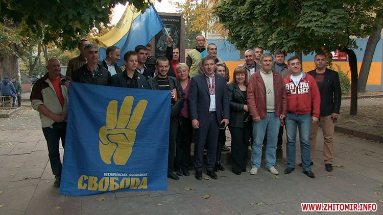 «Це символічно, - каже Віктор Брокарев, голова міської організації партії ВО «Свобода». - Тут стояв пам'ятник Карлу Марксу колись, і на місці цих бувших комуністичних вождів мають бути справжні герої, житомиряни або уродженці нашої області, які дійсно боролись за незалежність України»