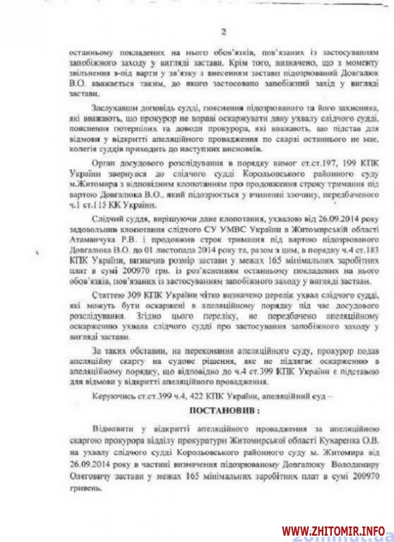 Клопотання про продовження терміну тримання під вартою суд (суддя Рожкова задовольнила) першої інстанції задовольнив. Але у відповідності до п. 3 ст. 184 КПК, суддя була зобов’язана визначити розмір застави, крім випадків, передбачених п. 4 цієї статті, який знаходиться з п. 3 у конфлікті. Оскільки в п. 4 говориться про те, що суддя має право не визначати (!) розмір застави, якщо це пов’язано з насильством або спричинило вбивство людини. Вона цього не зробила».