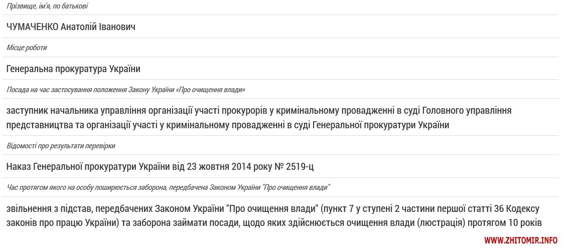 До люстраційного списку потрапив і колишній заступник прокурора області Анатолій Чумаченко, який в квітні цього року був переведений на роботу до Генпрокуратури.