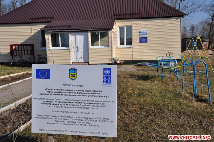 За словами Стрибізького сільського голови Леоніда Корзуна, дитячий садочок був побудований у 50-х роках минулого століття. Спочатку за кошти сільської ради і субвенції оновили дах, а у 2012-2013 роках в рамках проекту замінили вікна і двері. Зараз у закладі проводяться внутрішні роботи. За 2 місяці тут буде сучасний садочок із внутрішніми туалетами та світлими й комфортними приміщеннями.