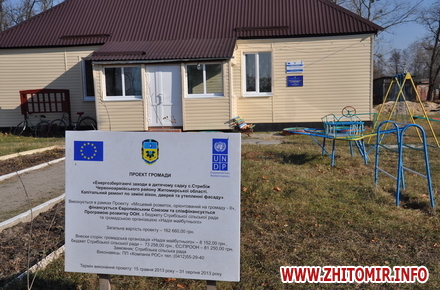 Як повідомляв Житомир.info, у рамках проекту «Місцевий розвиток, орієнтований на громаду» у селі Стрибіж Червоноармійського району встановили вуличні ліхтарі на сонячних батареях та зробили сучасний ремонт у дитсадку.