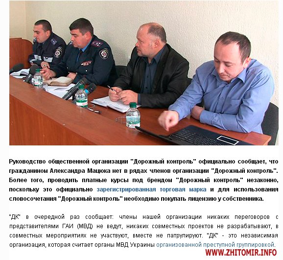«Руководство общественной организации «Дорожный контроль» официально сообщает, что гражданина Александра Мацюка нет в рядах членов организации «Дорожный контроль». Более того, проводить платные курсы под брендом «Дорожный контроль» незаконно, поскольку это официально зарегистрированная торговая марка и для использования словосочетания «Дорожный контроль» необходимо покупать лицензию у собственника.