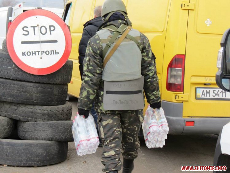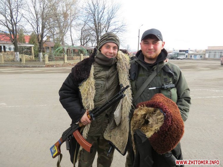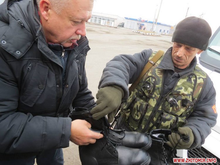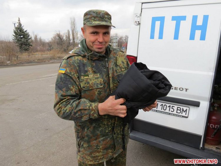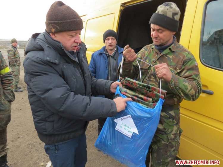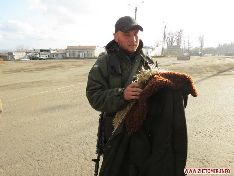 Что приятно было: в начале поездки встретили мы хорошо нам знакомого одного из активистов и руководителей Самообороны Житомирщины Ярослава. Он был дома и ехал в ту часть, в которой проходит службу. Он был очень легко одетый, так мы его одели капитально.