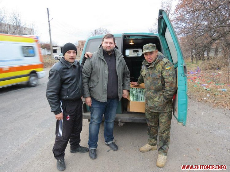 «Автомайдан-Житомир» в составе восьми человек тремя автобусами в ночь с 1 на 2 ноября выехал в зону АТО. 2 ноября мы весь день были в районе Дебальцево и Троицкого – возили гуманитарную помощь нашим военным, в частности адресные посылки от родителей и близких.