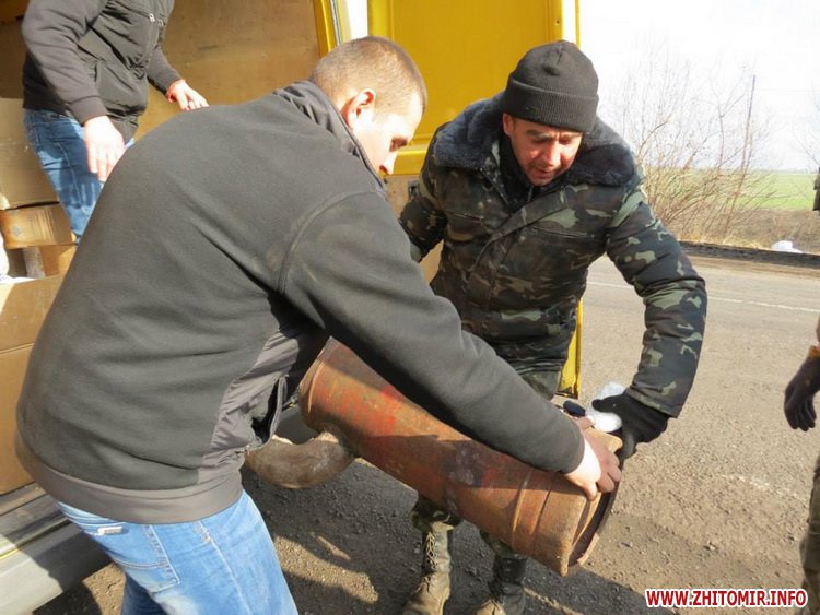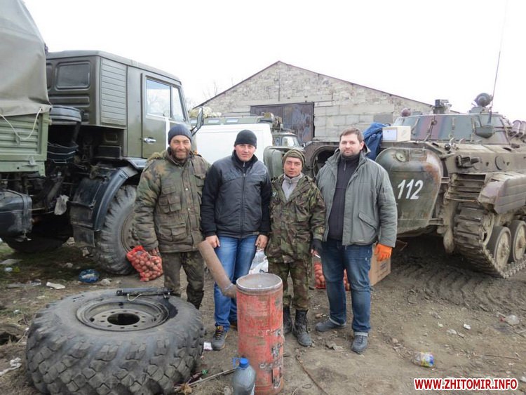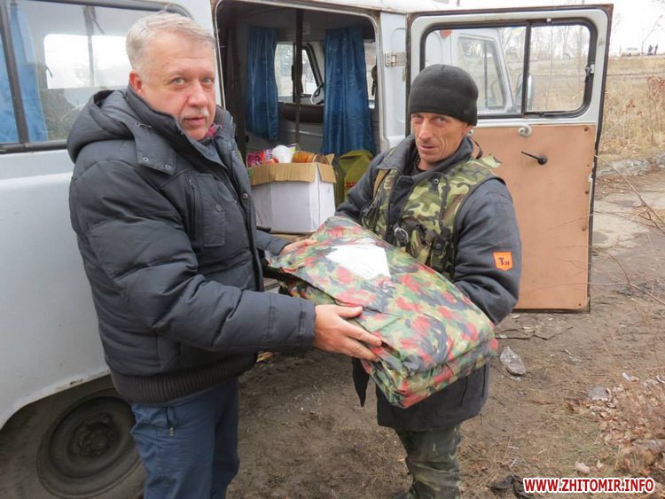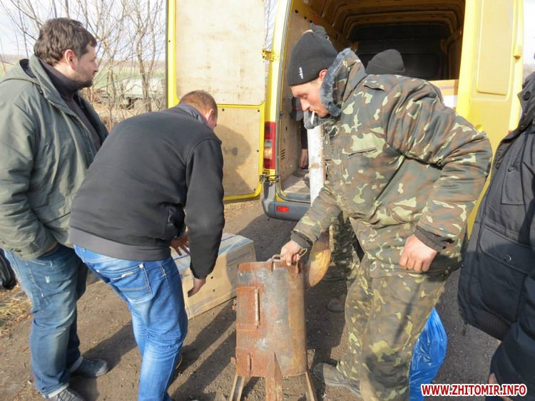 Были мы в 54-ом разведбатальоне, затронули 128-ю бригаду, которая состоит из военнослужащих, призванных с Ужгорода, Ровно, Тернополя, есть там и житомиряне, есть черниговчане. Им в основном помогают тернопольчане. Были мы в этой бригаде, были в их артиллеристов, были в танковом и пехотном подразделениях. Разгрузили много продуктов, несколько печек-буржуек. Мы с собой в этот раз брали 9 буржуек, все фактически мы по блок-постам развезли. Кроме этого, там, под Дебальцево, мы нашли наших житомирян, о которых вообще все забыли. Это 50-й рембатальон из Новогуйвинского. Завезли ребятам то, что было в наших силах, взяли их координаты и, я так думаю, что эту неделю будем собирать им помощь и съездим в этот батальон, потому что ребятам ничего не возят. Кроме этого, мы дали много продуктов и обмундирования 42-му штурмовому батальону.