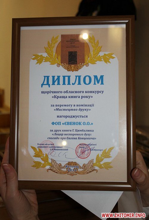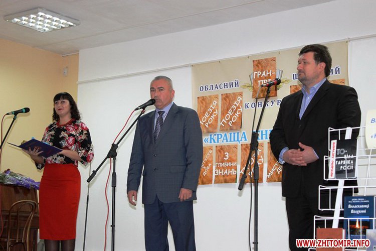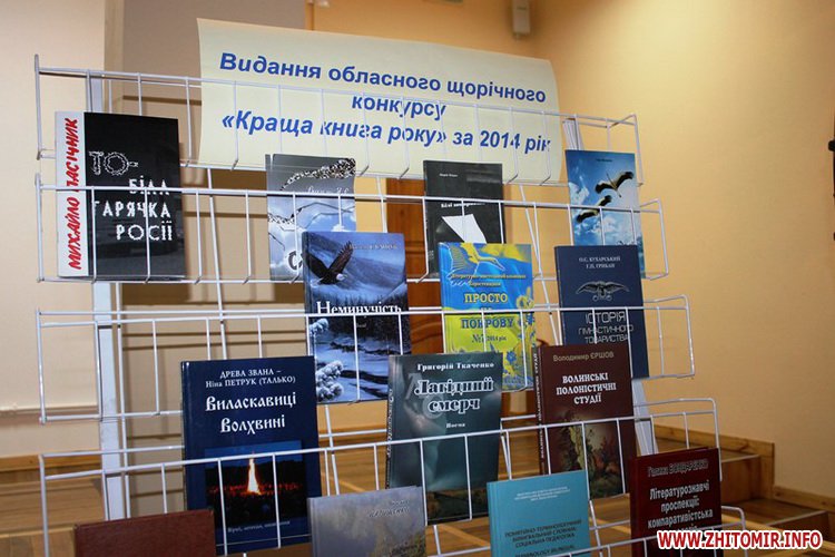 Вп’яте в Житомирській області визначили переможців конкурсу «Краща книга року». 7 листопада, напередодні Дня української писемності та мови, в обласній універсальній науковій бібліотеці ім. Олега Ольжича відбулася церемонія нагородження авторів і видавців кращих книг, виданих у 2014 році.