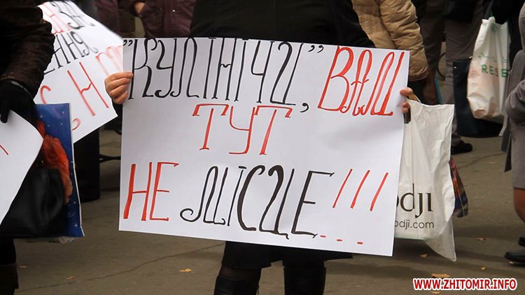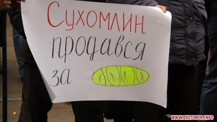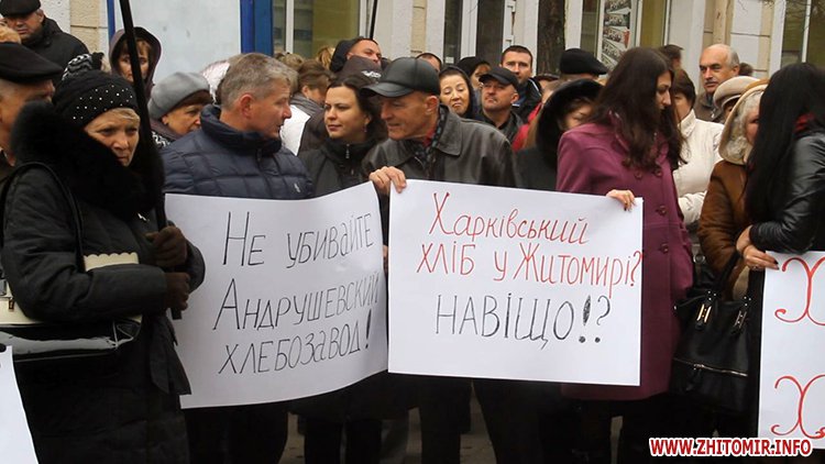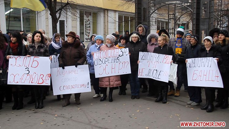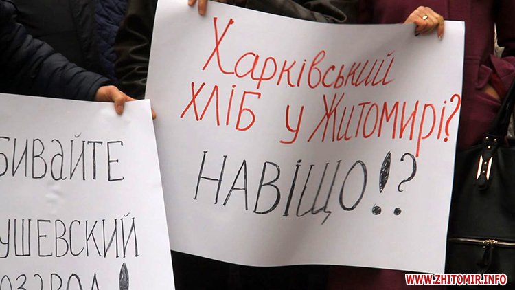 Близько сотні людей 11 листопада зібрались під стінами Житомирської мерії аби висловити свою незгоду з діями міської влади. Люди кажуть: чиновники дозволили підприємству, яке належить колишнім регіоналам, встановлювати в Житомирі свої хлібні кіоски.