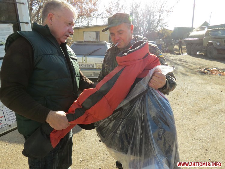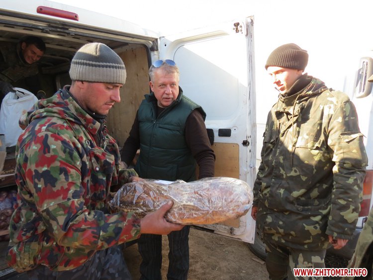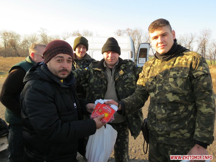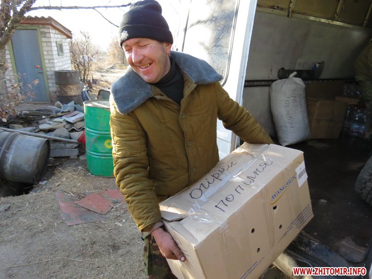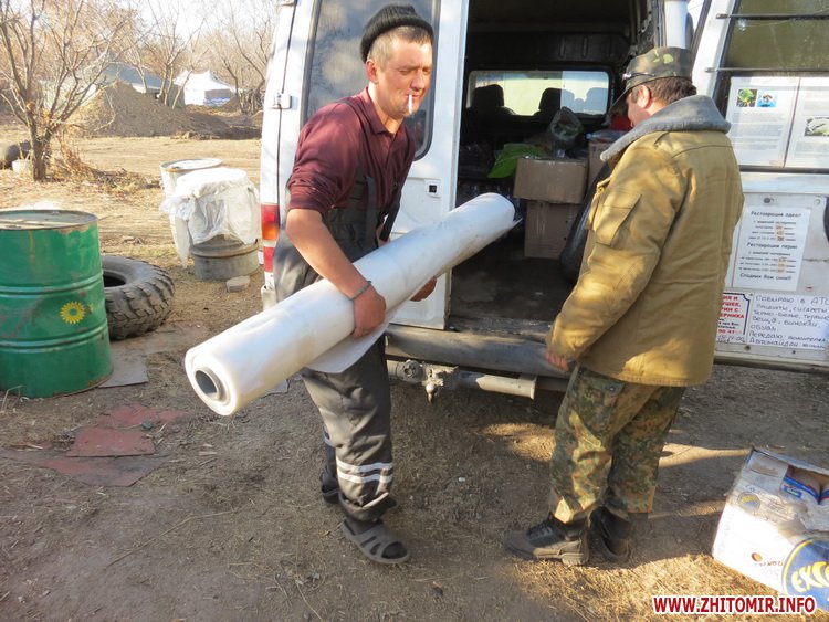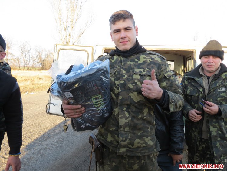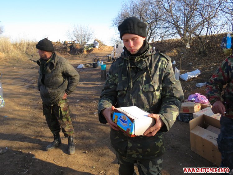 Напоследок хочется выразить благодарность нашим простым житомирянам, которые нам очень помогли. Хозяйка магазина «Людмила» дала материал для простыней. Помог силикатный завод, который дал 100 кг пленки, чтобы перекрытие делать в блиндаже, ватные костюмы, носки. Это и руководство завода, и простые люди собирали это все. Отдельное спасибо жителям Попельни, которые дали очень много продуктов, буржуйку. Также благодарность нашему житомирскому волонтеру Юле Толмачевой. Она очень помогла с водой, познакомила нас с попельнянскими волонтерами. Она уникальный человек. Благодарны и киевскому волонтерскому движению «Домики», которое и в этот раз помогло нам с продуктами».