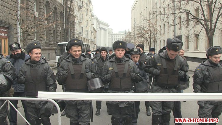 І знову до мітингувальників ніхто не виходить. Лишивши написи на асфальті, люди з плакатами та прапорами прямують до Адміністрації Президента. Але дорогу колоні перегороджує колона силовиків.