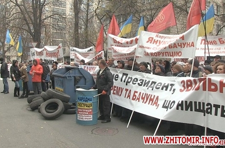З імпровізованими барабанами, шинами, плакатами, прапорами та сміттєвими баками кількасот кондитерів з Житомира вже вдруге приїхали до Генпрокуратури вимагати люстрації. Люди стверджують: заступник генпрокурора вимагав з підприємства щомісячну данину.