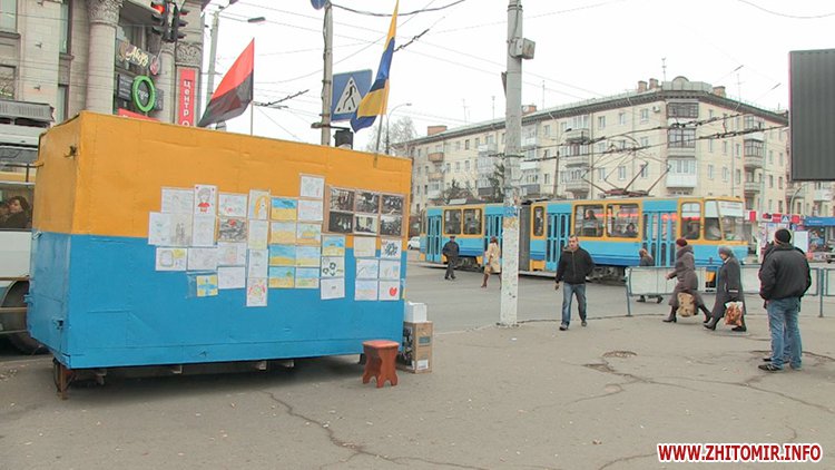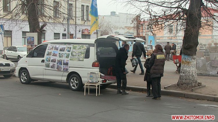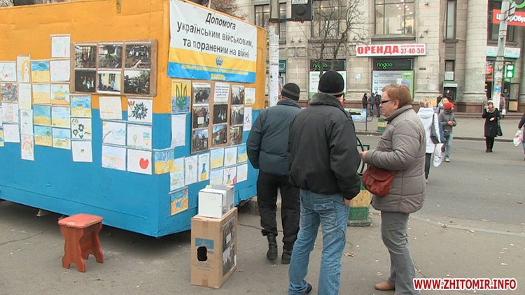 На Київській, навпроти ЦУМУ розмістилися активісти громадської організації «Проект «Водень». Тут розповідають: зібрану допомогу передають в АТО, у військовий шпиталь,а також переселенцям зі Сходу.