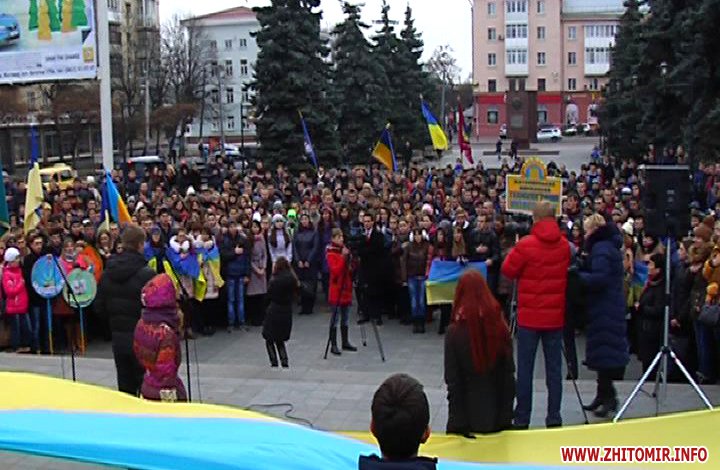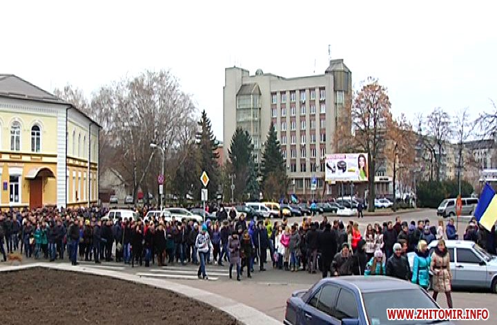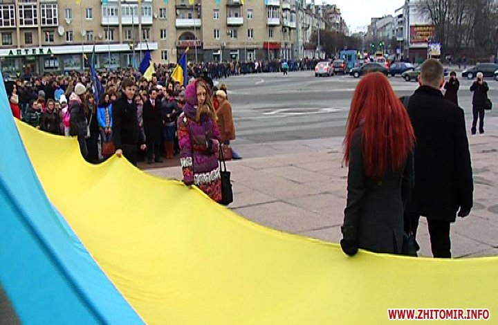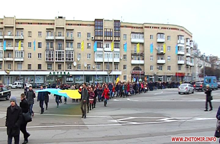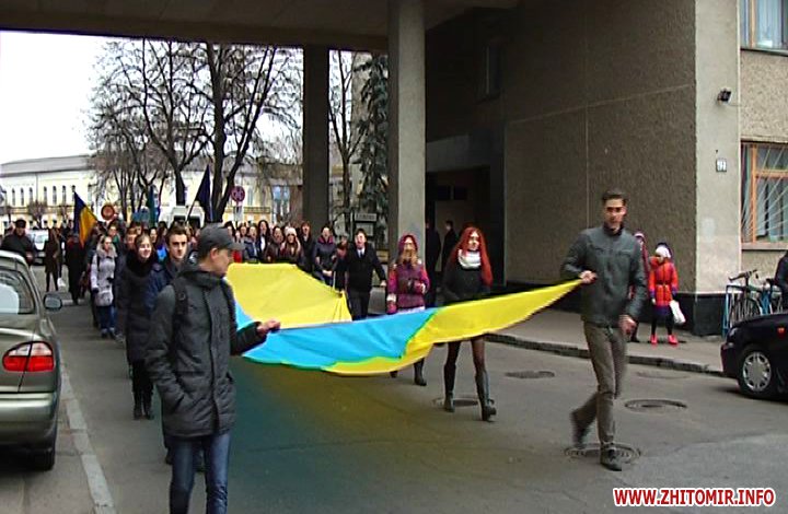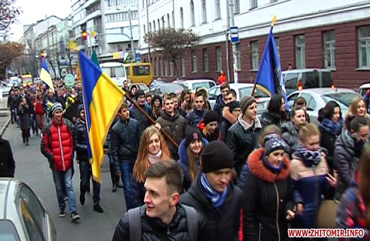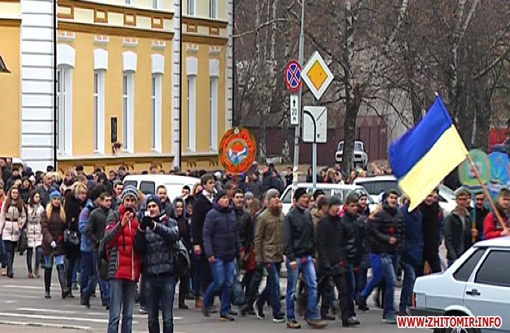 Патріотичною ходою житомирська молодь відзначила День студента. Тисячі студентів з усіх вищих навчальних закладів міста пройшлися центральними вулицями міста. Попереду колони вони розгорнули синьо-жовтий прапор завдовжки вісім метрів.
