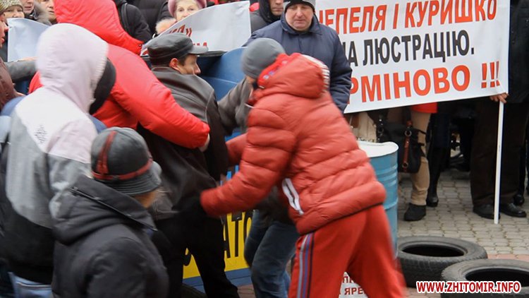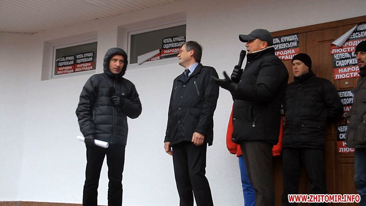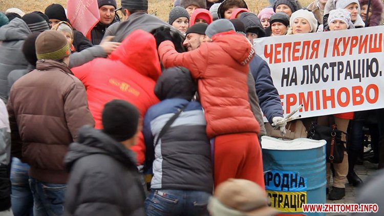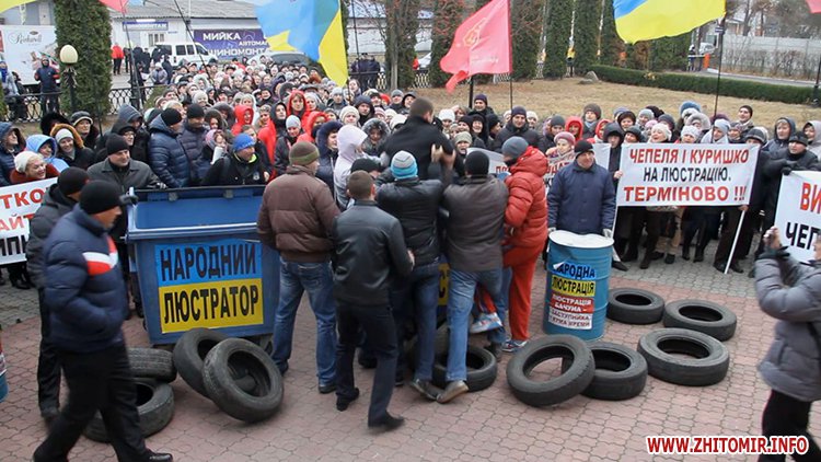 Потім мітингувальники провели «люстрацію» двох чоловіків, кинувши їх у сміттєвий бак з написом «народна люстрація». Пояснили це тим, що один із них нібито штовхався, йдучи повз учасників пікету, а інший йшов із невдоволеним виразом обличчя.