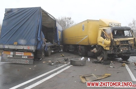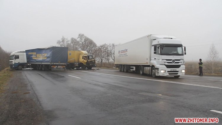 19 ноября около 7.30 утра на трассе Житомир-Бердичев возле села Сингуры Житомирского района столкнулись две фуры.