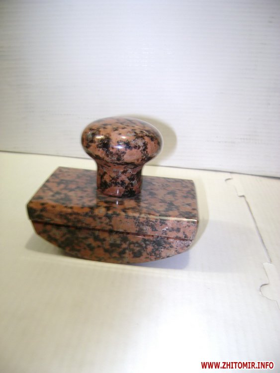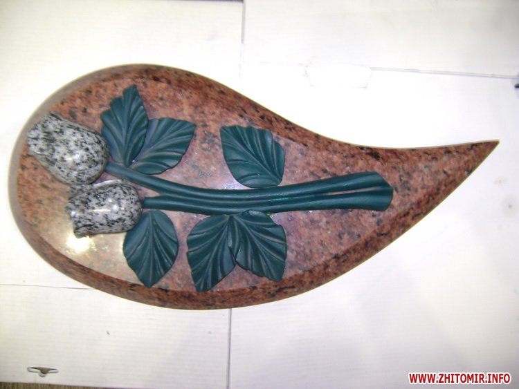 Пепельницы, подсвечники, авторучки, шахматы, женские туфельки, цветы, новогодние елочки, булавы, офисные канцелярские наборы, кабинетные фонтанчики «Плавающий шар», футбольные мячи, пасхальные яйца – это далеко не полный ассортимент сувенирной продукции из гранита, предлагаемый житомирскими камнеобработчиками. Соответственный рынок – относительно молодой, сформировался десятилетие тому в ответ на запрос в изящных подарках из натурального камня. «Фабрикой» гранитных сувениров закономерно стал г. Коростышев. Там есть все, чтобы удовлетворить возросшие запросы самых требовательных заказчиков, вплоть до Президента Украины или иранского шейха. В Коростышеве сформировалась целая индустрия каменных сувениров, начиная от компьютерного моделирование изделий, заканчивая воплощением заказа в камне.