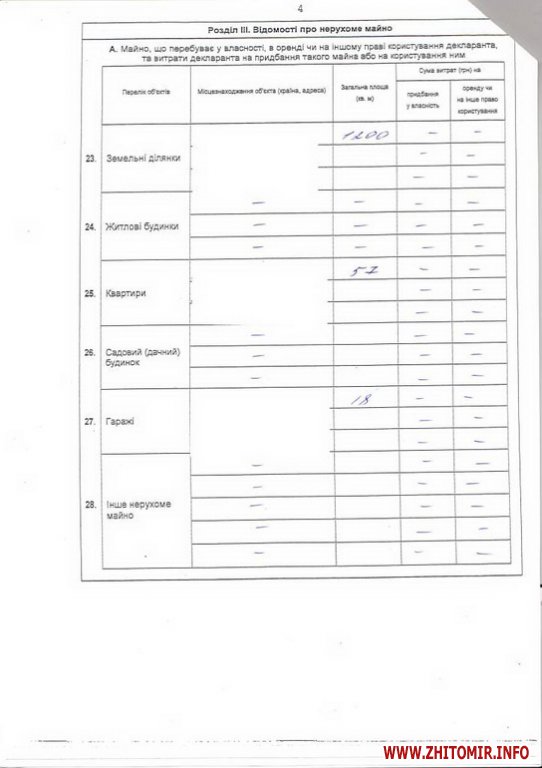 Кондратюку принадлежит земельный участок площадью 1200 кв.м, квартира общей площадью 57 кв.м и гараж площадью 18 кв.м. В собственности жены недвижимости нет. В собственности декларанта есть автомобиль 2002 года выпуска, у жены машина 2008 г.в.