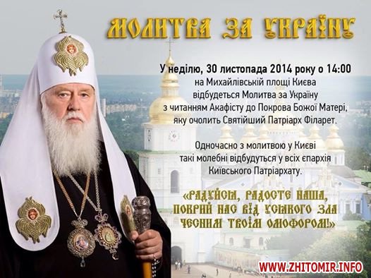 У Свято-Михайлівському кафедральному соборі м. Житомира в неділю 30 листопада о 14.00 годині відбудеться спільна «Молитва за Україну».