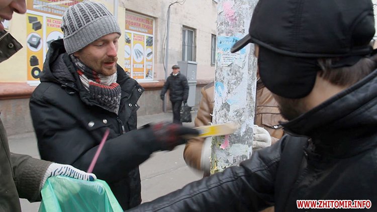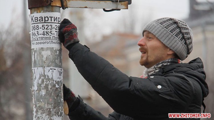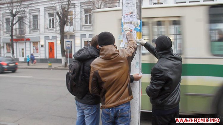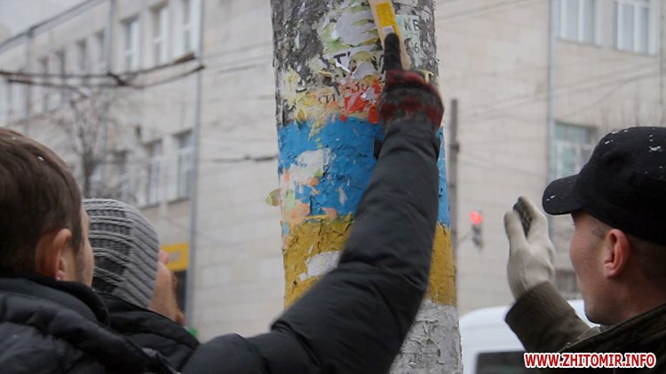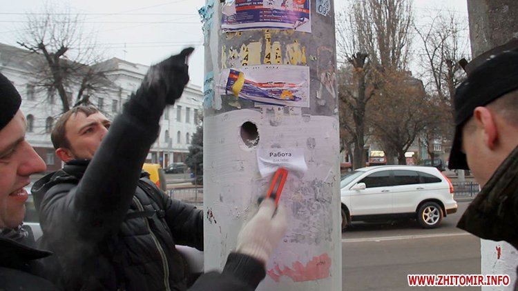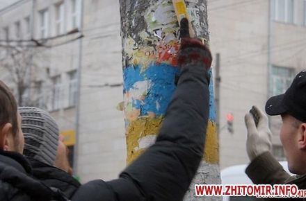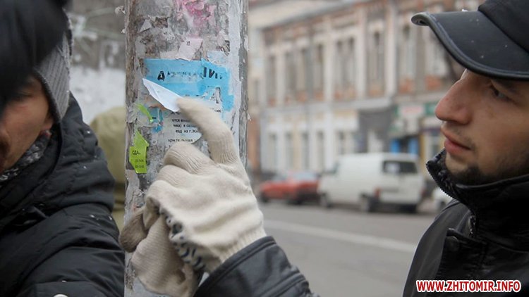 З ножами, викрутками та металевими щітками активісти пройшлись центром міста, щоб власноруч очистити стовпи від реклами та оголошень. Вони обурені тим, що в культурному та історичному центрі Житомира на стовпи та дерева клеють об’яви та рекламні листівки.