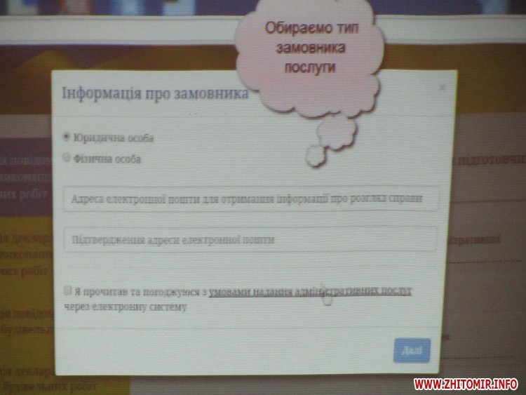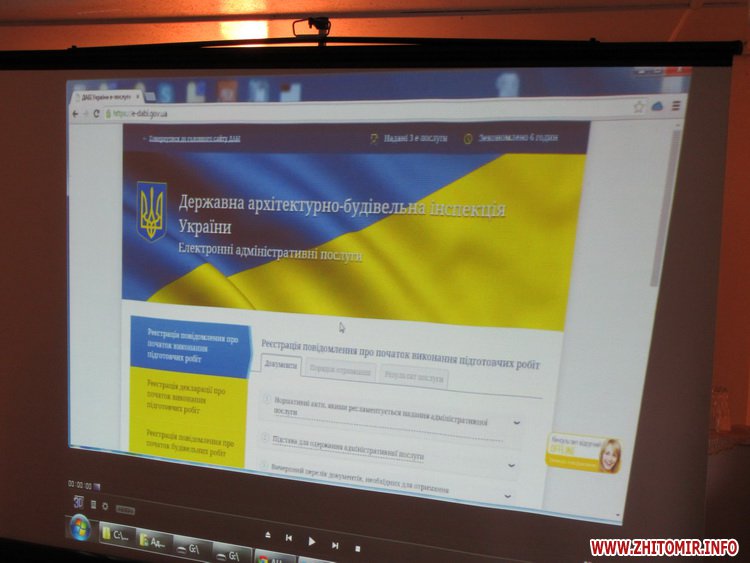 «Якщо суб’єкт звернення, фізична чи юридична особа, зареєструвався та має відповідний електронний підпис, він може бути користувачем цієї електронної адміністративної послуги. Через сайт мережі інтернет e-dabi.gov.ua користувач, який має право електронного підпису, може користуватися даними послугами. Інформаційну підтримку можна знайти на сайті Державної архітектурно-будівельної інспекції України», - розповів Щербань та наочно продемонстрував, як здійснюється подача електронної адміністративної форми.